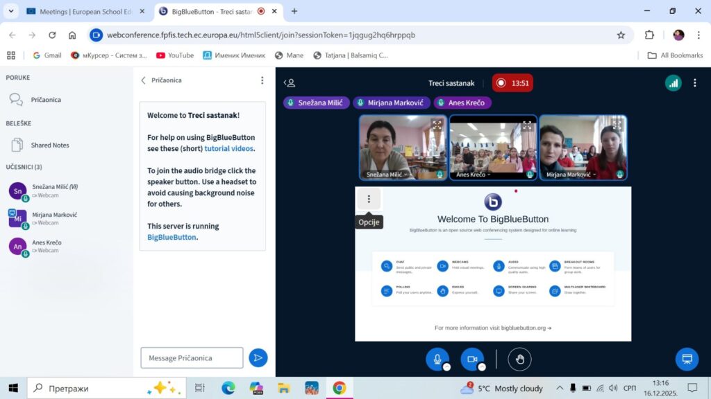 U okviru našeg međunarodnog eTwinning projekta održan je zajednički online sastanak učenika i nastavnika naše škole, OŠ „Bila“ Vitez i OŠ „Milivoj Petković – Fećko“ Platičevo.