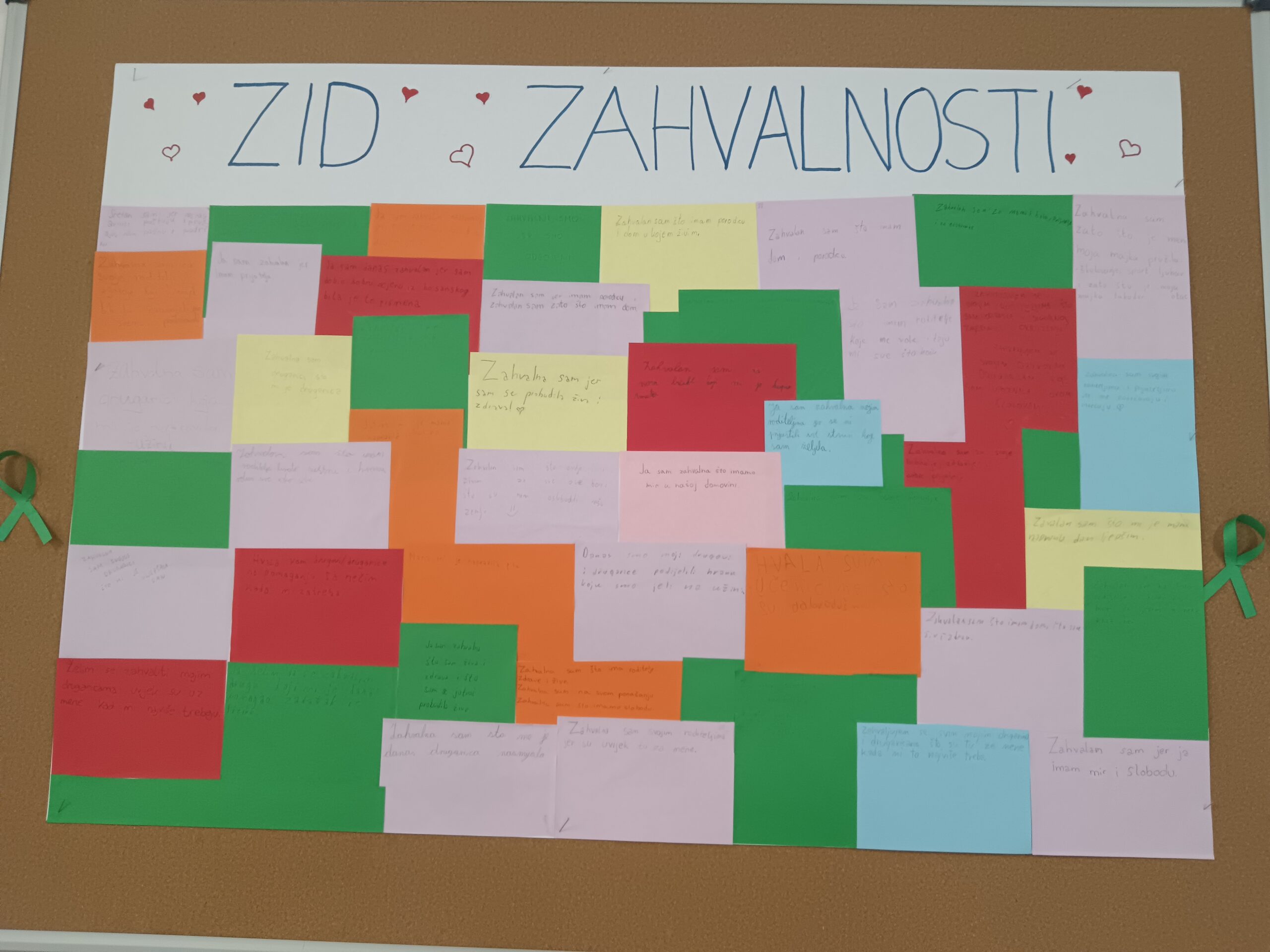 Vijeće učenika, uz podršku psihologa škole, pročitalo je oglas posvećen važnosti ovog dana i pozvalo sve učenike da učestvuju u akciji pisanja poruka zahvalnosti. Poruke koje su učenici napisali formirale su „Zid zahvalnosti“ i posebno uređen pano u holu škole, kao simbol zajedništva, empatije i međusobnog poštovanja.